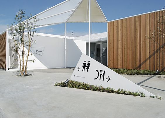 公園中利用建筑物去指引公共衛(wèi)生間的標(biāo)識(shí)別。